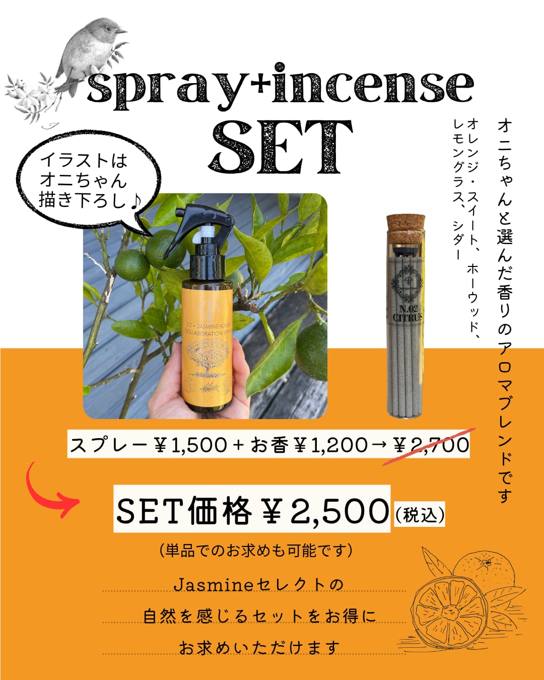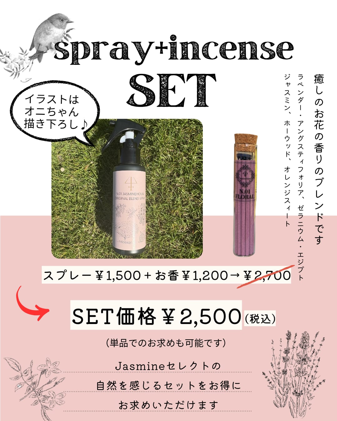 スプレー¥1,500.- + お香¥1,200.-=¥2,700.-→¥2,500.-